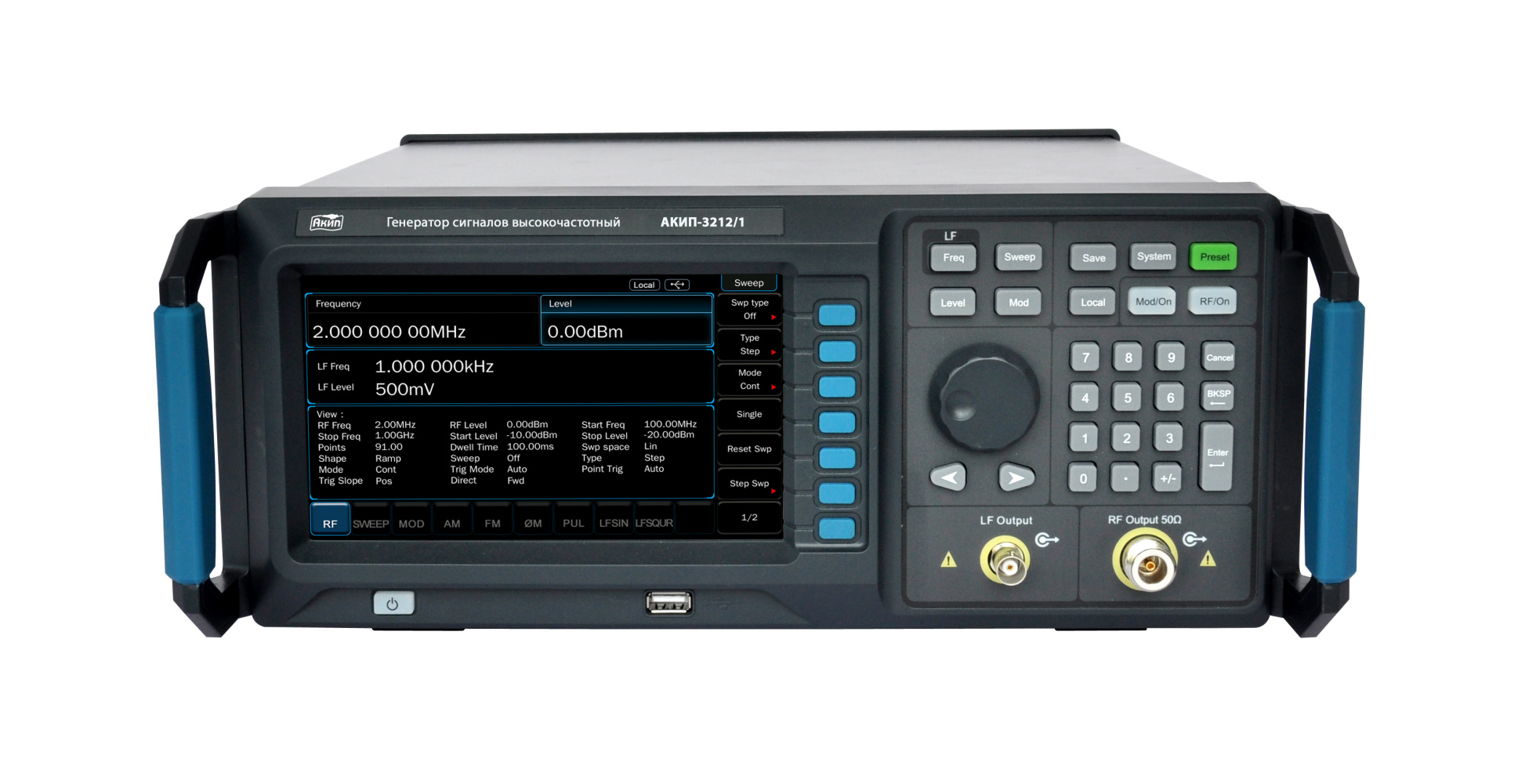 | Режим свипирования | Шаговый (линейный или логарифмический), по списку |