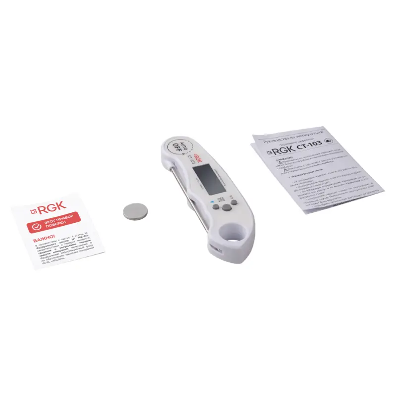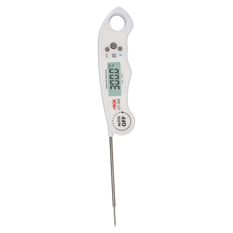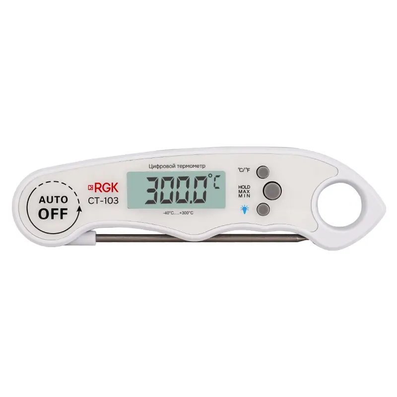 Контактный термометр RGK CT-103 — это надежный и удобный инструмент для точного измерения температуры в широком диапазоне от -40 до +300 градусов Цельсия. Его конструкция включает тонкий зонд диаметром 3,5 мм, что позволяет легко проникать в измеряемые среды и получать точные данные за короткий промежуток времени. Это делает прибор идеальным для контроля температуры в кулинарии, пищевой промышленности, лабораторных исследованиях и техническом обслуживании.