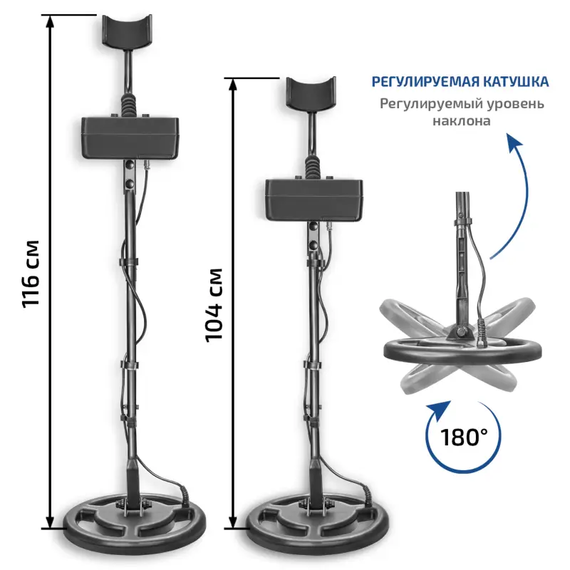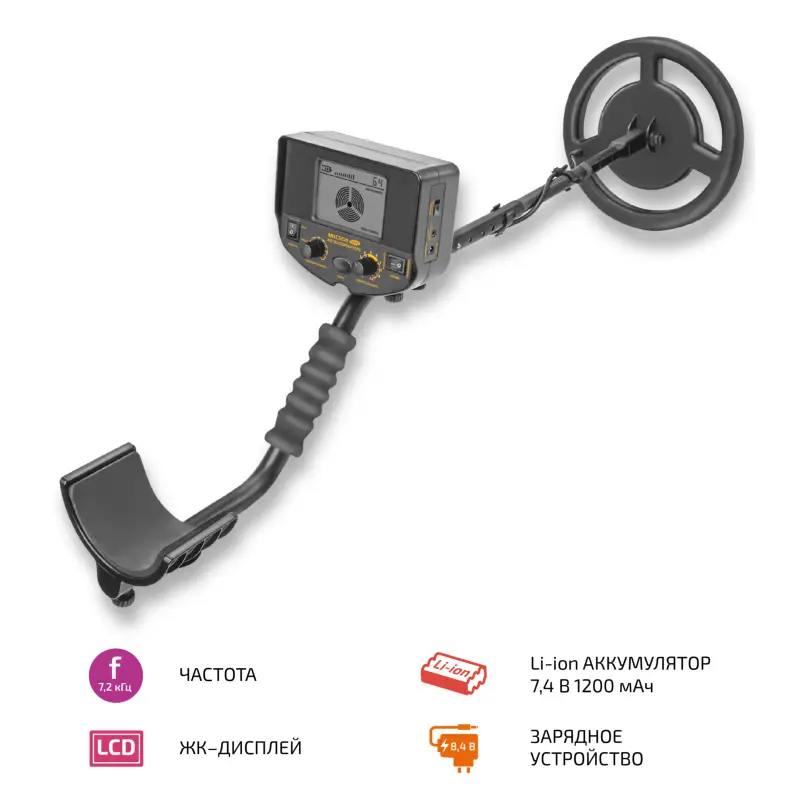 Металлоискатель работает на частоте 7,2 кГц, что обеспечивает высокую чувствительность и точность обнаружения. Катушка размером 30 см обеспечивает надежную работу устройства в различных условиях, включая высокую влажность грунта.