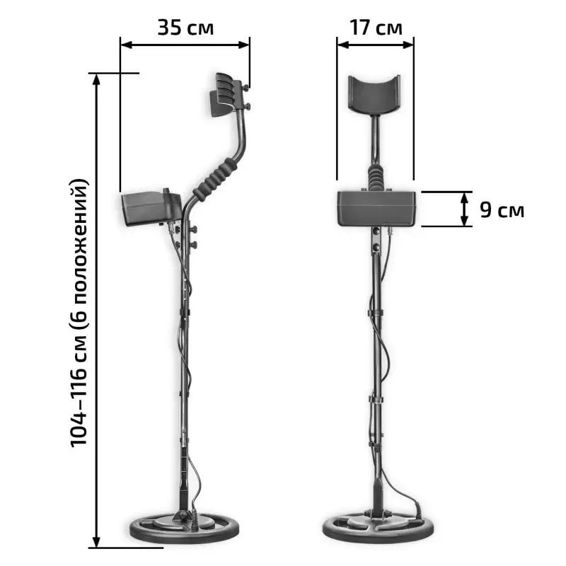 | Максимальная глубина обнаружения* | На открытом пространстве до 1,5 м (алюминиевая пластина 50х50х1,2 см), до 30 см (монета 10 рублей) |