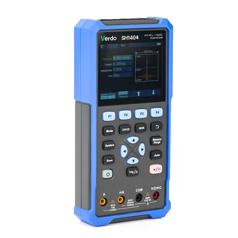 Осциллограф-мультиметр VERDO SH1404 представляет собой современное универсальное измерительное устройство, сочетающее функции цифрового мультиметра и двухканального осциллографа. Он предназначен для широкого круга задач в области электроники, электромонтажа и сервисного обслуживания, предлагая инженерам и техническим специалистам высокую точность, надежность и компактность в одном приборе. Устройство официально включено в Государственный реестр средств измерений РФ под номером 90667-23, что подтверждает его соответствие требованиям метрологии и допускает к использованию в профессиональной деятельности.