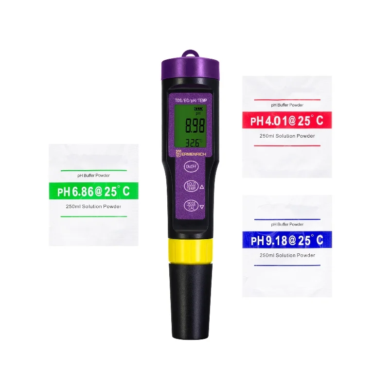 QT20 измеряет четыре важных параметра: кислотность (pH), общее количество растворённых веществ (TDS), электропроводность и температуру. Это помогает понять, можно ли пить воду (хорошо, если TDS до 50 ppm) или она грязная (больше 1000 ppm). В комплекте есть растворы для калибровки, что повышает точность измерений.